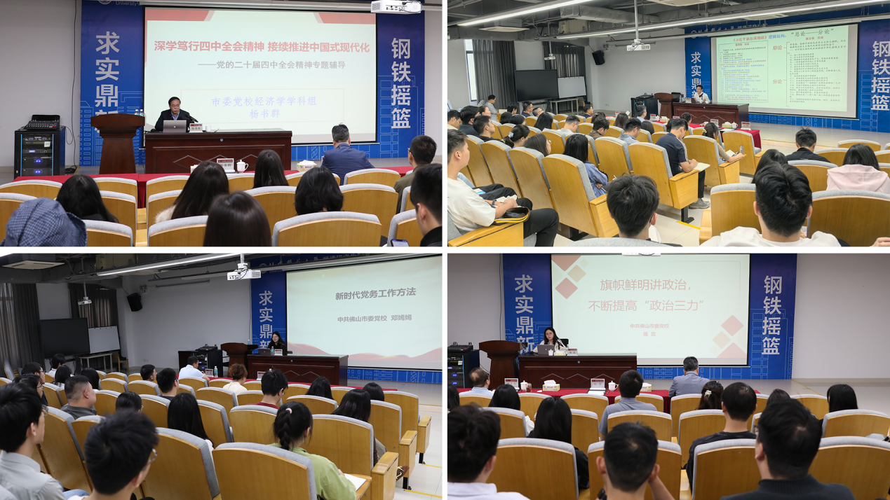 杨书群教授全面解读了党的二十届四中全会精神,聚焦“十五五”时期发展蓝图与战略部署,并结合区域发展实践进行了生动阐述;罗忠胜副教授详细阐释了《习近平谈治国理政》第五卷的重要意义、核心要义与实践要求,深刻揭示了其中蕴含的真理力量与实践伟力;邓嫣嫣副教授对新时代党务工作方法进行了系统梳理与深度阐释,为基层党建工作的规范化、科学化开展提供了有力的体系化指引;杨霖老师深入阐释了“讲政治”的时代内涵与提高“政治三力”的实践要求,强化了师生的政治自觉,砥砺了忠诚干净担当的政治品格;姚惠迎老师围绕“高质量做好新时代发展党员工作”进行专题辅导,为规范发展程序、提升工作质量提供了明确指导。