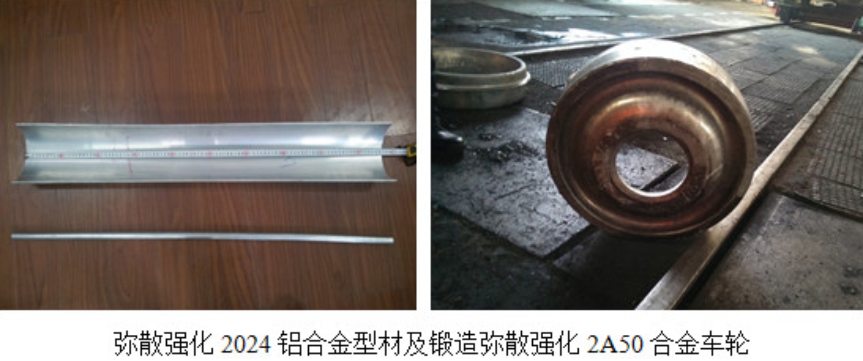 在弥散强化铝方面,制备出性能优异的弥散强化纯铝、2024铝合金以及2A50合金等型材和丝材。弥散强化纯铝抗拉强度>200MPa,是普通纯铝的2倍以上,导电性达到62IACS%,达到普通纯铝的96%。弥散强化2024铝合金抗拉强度达612MPa,屈服强度达480MPa,延伸率为10%,性能十分优异。