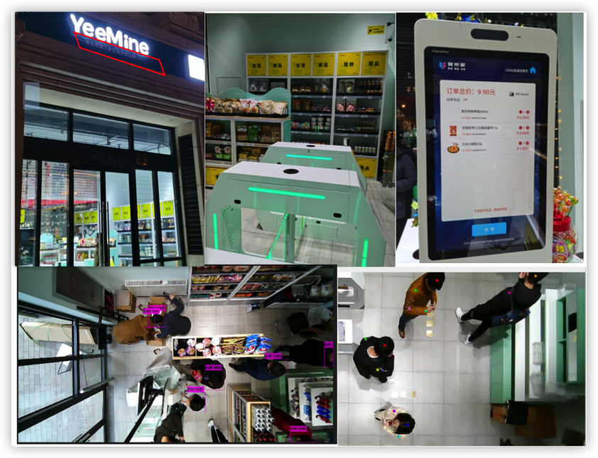 该项目通过无人便利超市的视频图像,自动识别、跟踪人体(顾客),同时通过视频图像识别货架商品,与购买者进行身份绑定,自动结算,实现无人零售。现已开设门店。该项目应用基于深度学习的视频目标检测、人体行为分析以及多目标跨摄像头跟踪等算法。应用目标检测算法获取顾客的实时位置,在边缘智能设备Nvidia Jetson TX2上的推理速度可达到每秒35帧,同时对购买商品进行识别。应用基于深度学习的行为分析算法,对顾客的购物行为进行分析,例如拿起商品、放下商品,从而实现顾客与商品的绑定,完成购买商品的自动结算。