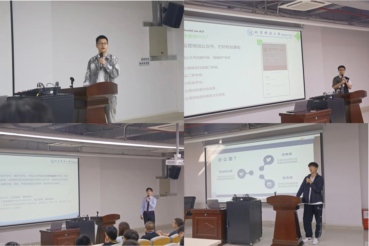 接下来,四位当选的主席团成员展示了未来一年所负责部门的工作规划。他们表示将为学生提供更好的服务,办好顺德研究生院的特色文体活动,并利用好大湾区的企业资源和科技优势,打造出一个具有竞争力的顺德研究生院品牌。