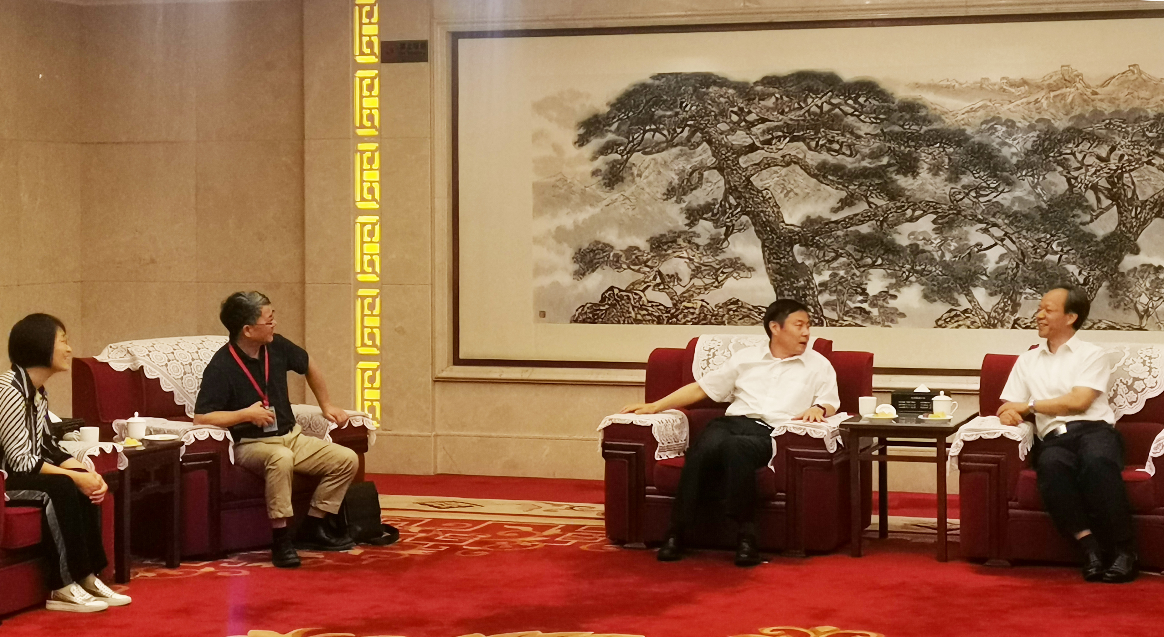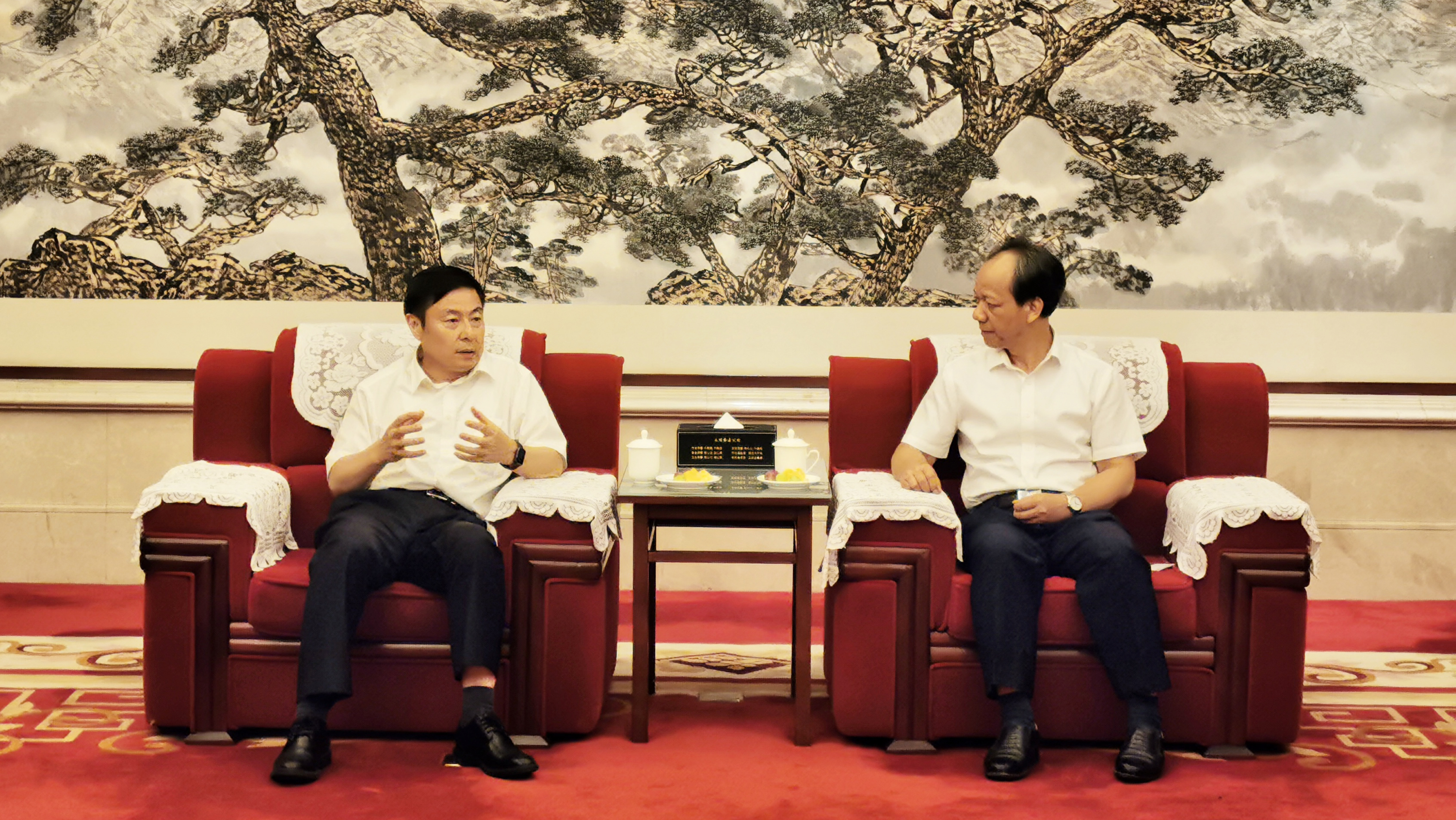 △ 毛新平院士(左一)与郭文海书记(右一)亲切交流