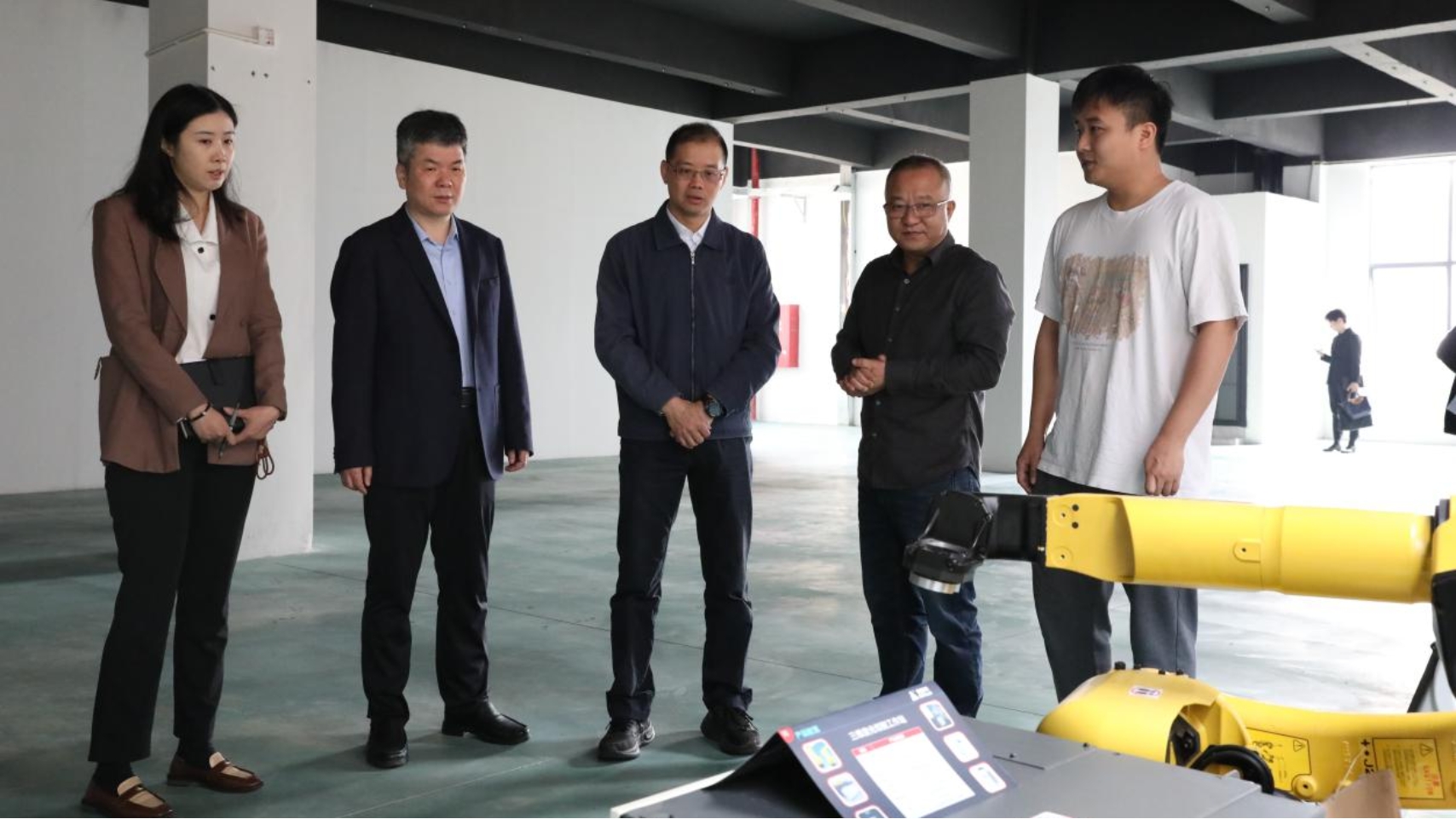 佛山市教育局高教办(职成科)科长林枫、副科长薛新坡、四级主任科员陈希洵,顺盛公司副总经理张丹昱,p站 产业发展部部长郑嘉庆等参加调研。