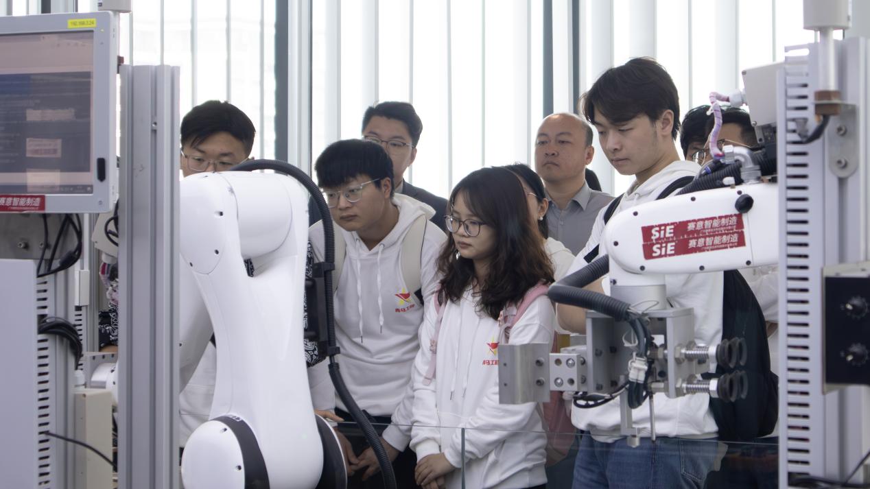 ▲师生在广州赛意信息科技股份有限公司顺德分公司展厅参观学习
