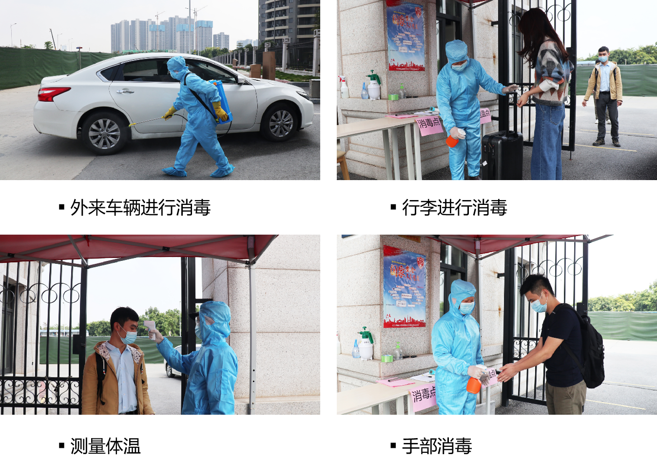 师生返校前进行流行病学史调查,填写健康登记表,返校后进行体温测量,学生按地面标识点以1.5米的安全距离有序排队,进入p站 ,依次经过体温检测区和消毒区,完成体温测量、手部消毒和行李消杀。